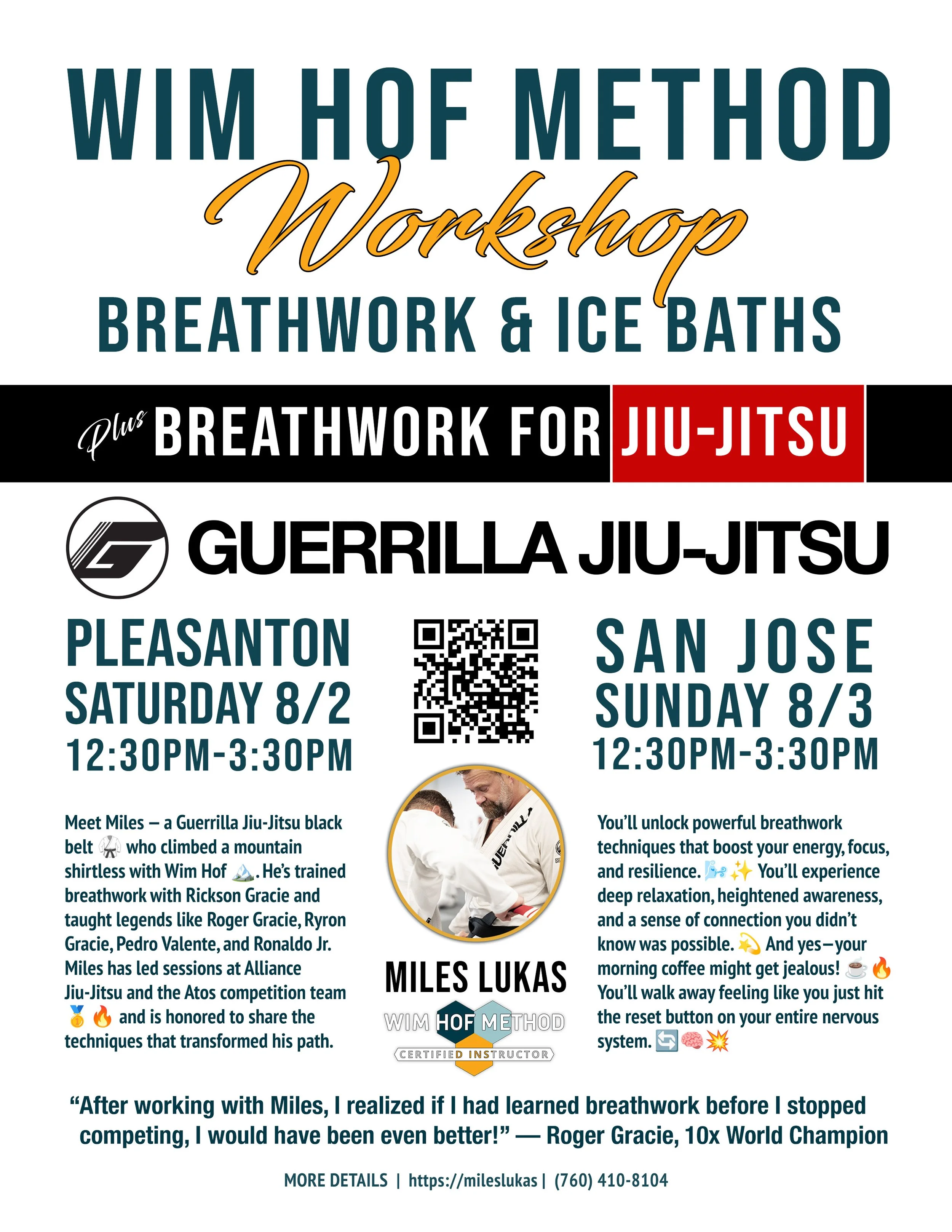James Terry 7/23/25 James Terry 7/23/25 Wim Hof Breathing Workshop New Wim Hof Workshop at Guerrilla Jiu-Jitsu Pleasanton and Guerrilla Jiu-Jitsu San Jose! Read More